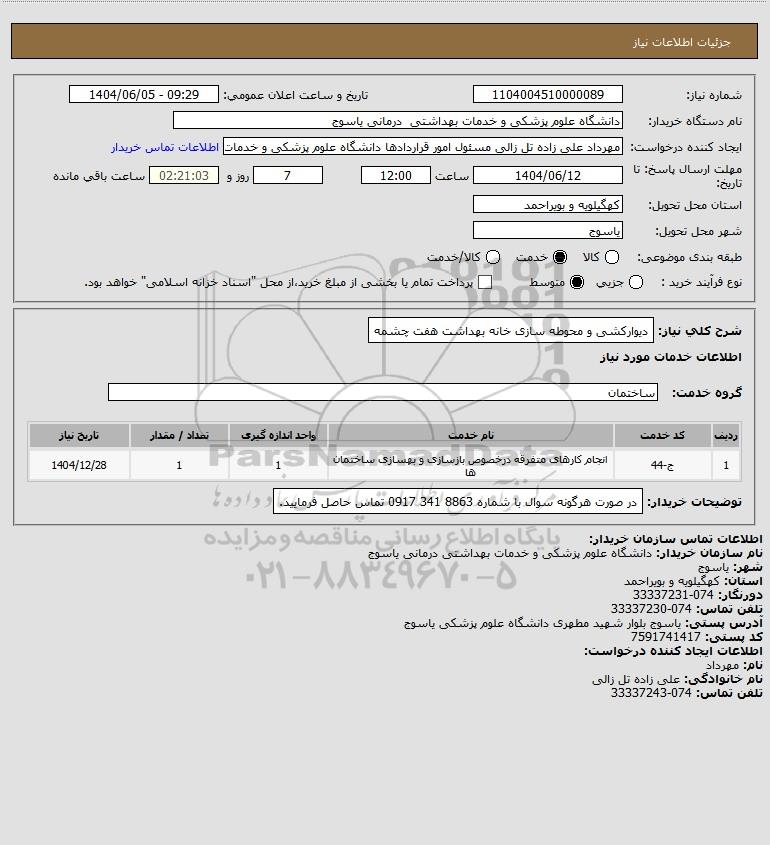 استعلام دیوارکشی و محوطه سازی خانه بهداشت هفت چشمه, استعلام دیوارکشی و محوطه سازی خانه بهداشت هفت چشمه