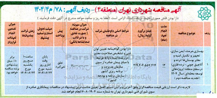 آگهی مناقصه شهرداری تهران (منطقه 4) ردیف آگهی : 78 / م 1404.4