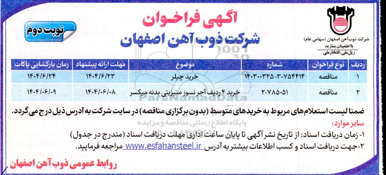 آگهی فراخوان شرکت ذوب آهن اصفهان ؟ نوبت دوم