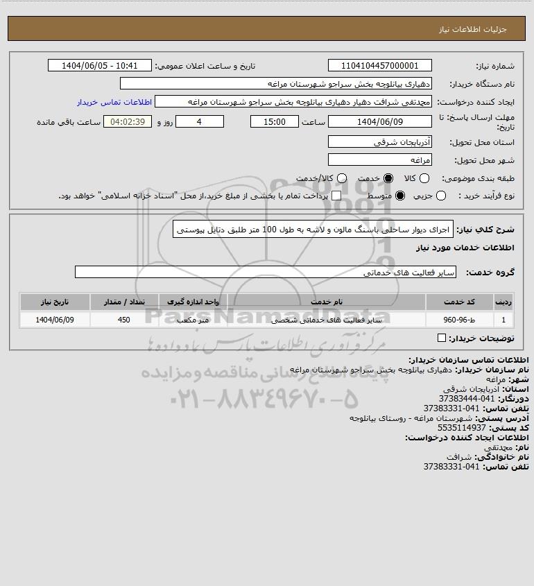 نام دستگاه خریدار:دهیاری بیانلوچه بخش سراجو شهرستان مراغه