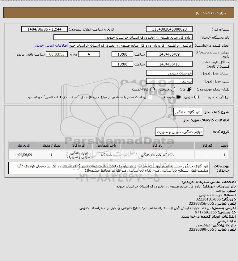 نام دستگاه خریدار:اداره کل منابع طبیعی و ابخیزداری استان خراسان جنوبی