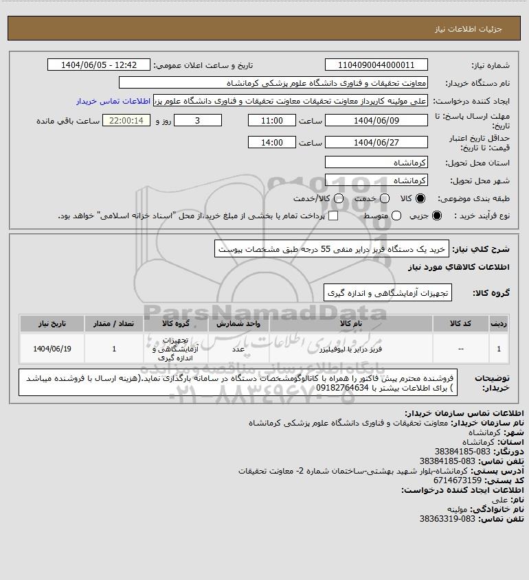 نام دستگاه خریدار:معاونت تحقیقات و فناوری دانشگاه علوم پزشکی کرمانشاه