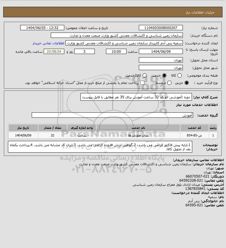 نام دستگاه خریدار:سازمان زمین شناسی و اکتشافات معدنی کشور وزارت صنعت معدن و تجارت