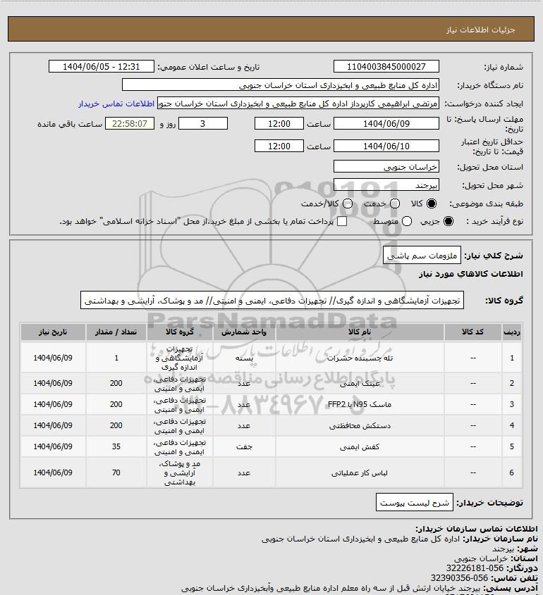 نام دستگاه خریدار:اداره کل منابع طبیعی و ابخیزداری استان خراسان جنوبی