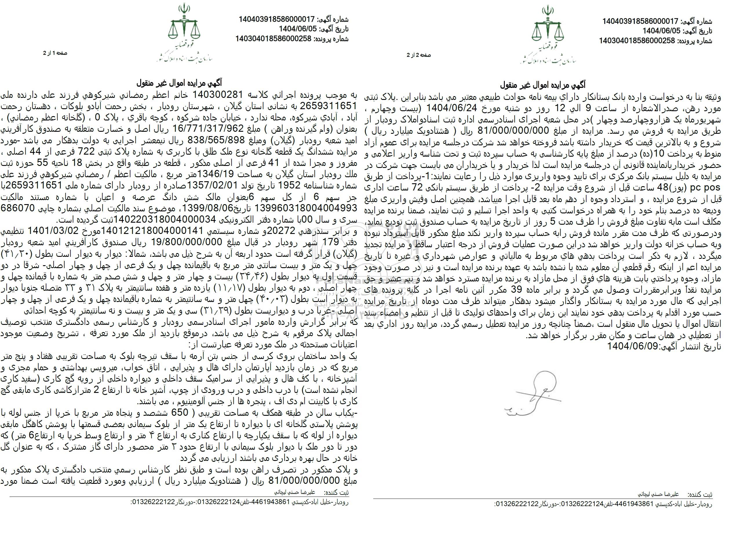تاریخ مزایده 1404.06.24 ساعت 9 الی 12