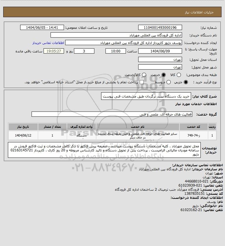 نام دستگاه خریدار:اداره کل فرودگاه بین المللی مهراباد