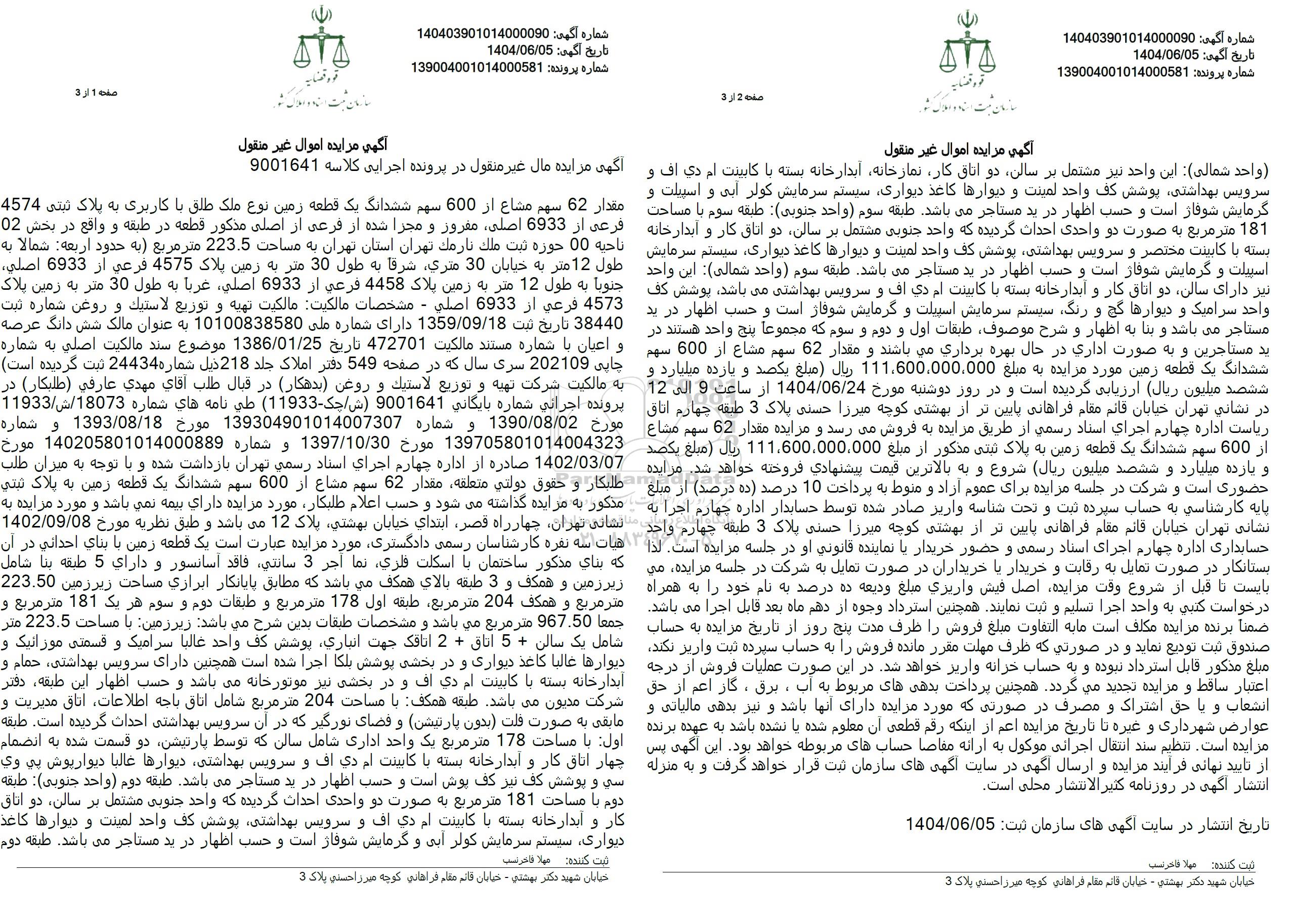 ارزش مورد مزایده 111.600.000.000 ریا ل