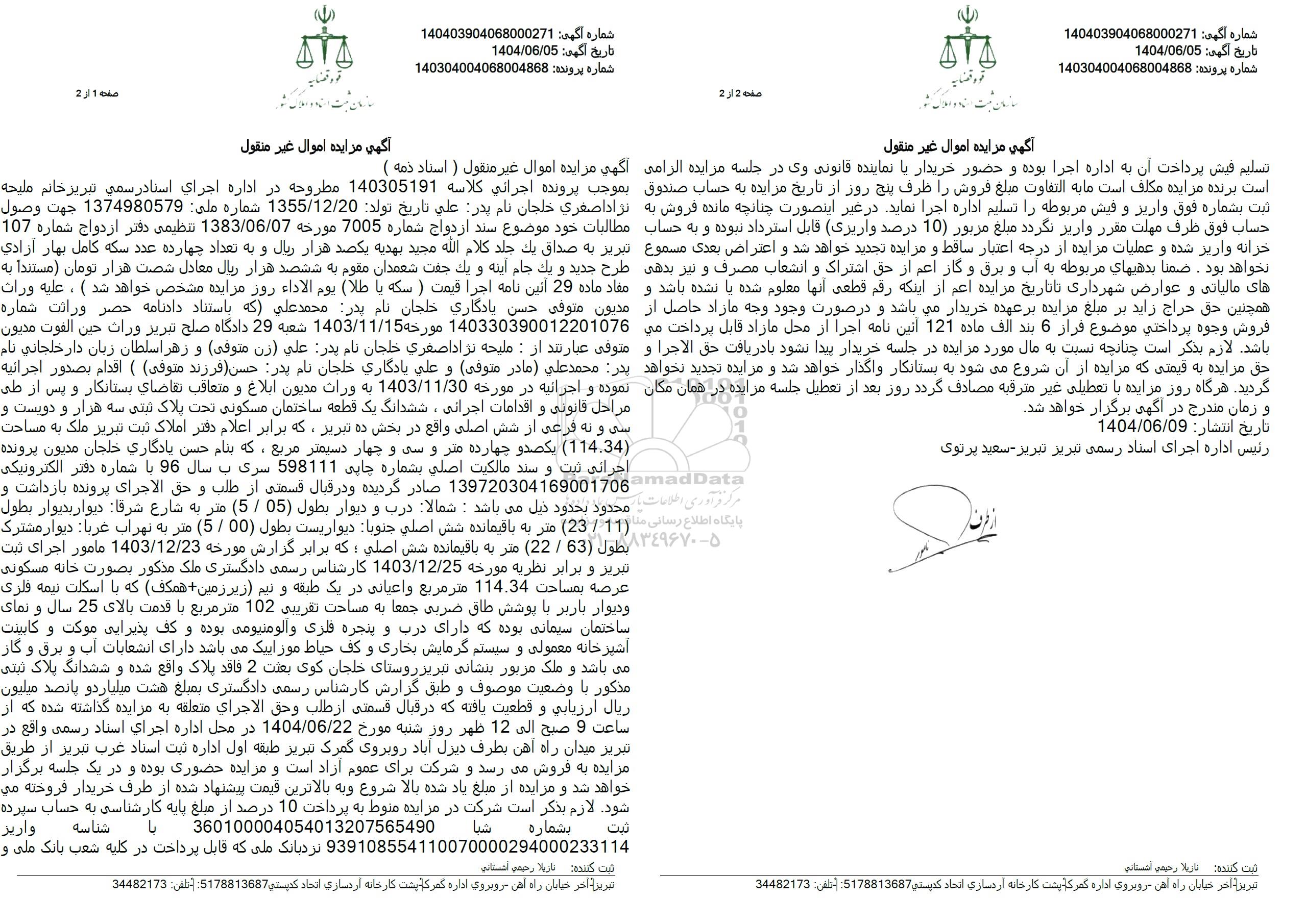 مزایده از ساعت 9 الی 12 روز شنبه مورخ 1404.6.22