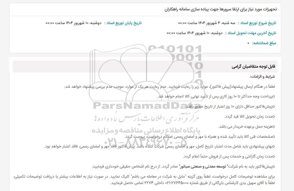 استعلام تجهیزات موردنیاز برای ارتقای سرورها جهت پیاده سازی سامانه راهکاران, استعلام تجهیزات موردنیاز برای ارتقای سرورها جهت پیاده سازی سامانه راهکاران