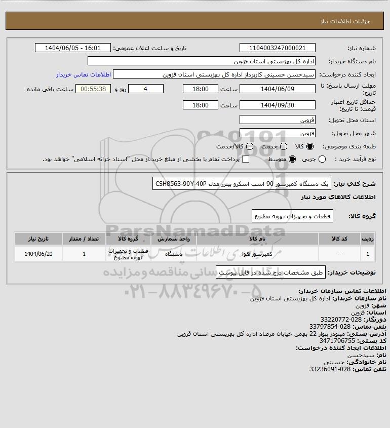 1 -- کمپرسور هوا دستگاه قطعات و تجهیزات تهویه مطبوع 1 1404/06/20
