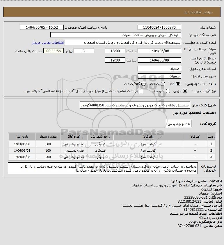 نام سازمان خریدار: اداره کل اموزش و پرورش استان اصفهان