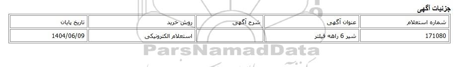 171080شیر 6 راهه فیلتراستعلام الکترونیکی1404/06/09