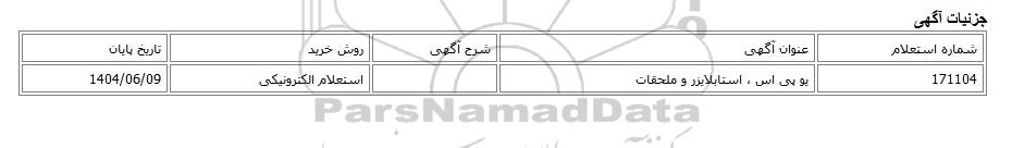 | 171104 | یو پی اس ، استابلایزر و ملحقات | استعلام الکترونیکی | 1404/06/09 |