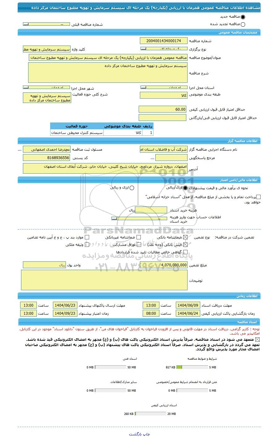 | مبلغ تضمین | 4,070,000,000 | واحد پول | ریال |