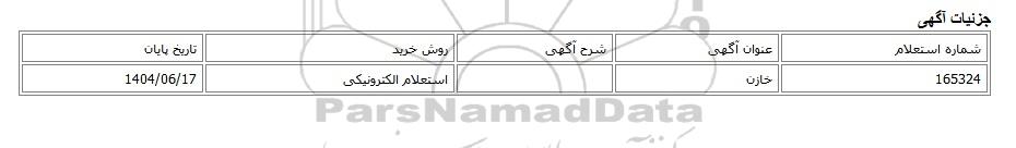 | 165324 | خازن | استعلام الکترونیکی | 1404/06/17 |