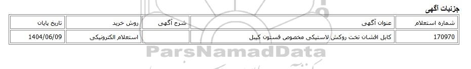 | 170970 | کابل افشان تخت روکش لاستیکی مخصوص فستون کیبل | استعلام الکترونیکی | 1404/06/09 |