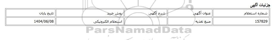 | 157829 | منبع تغذیه | استعلام الکترونیکی | 1404/06/08 |