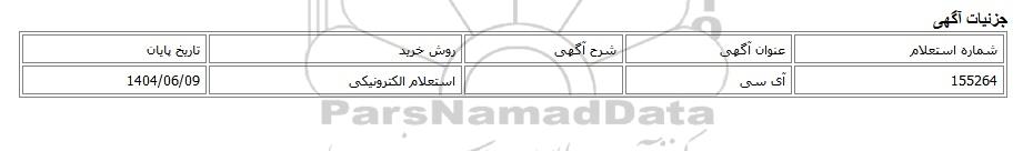 | 155264 | آی سی | استعلام الکترونیکی | 1404/06/09 |