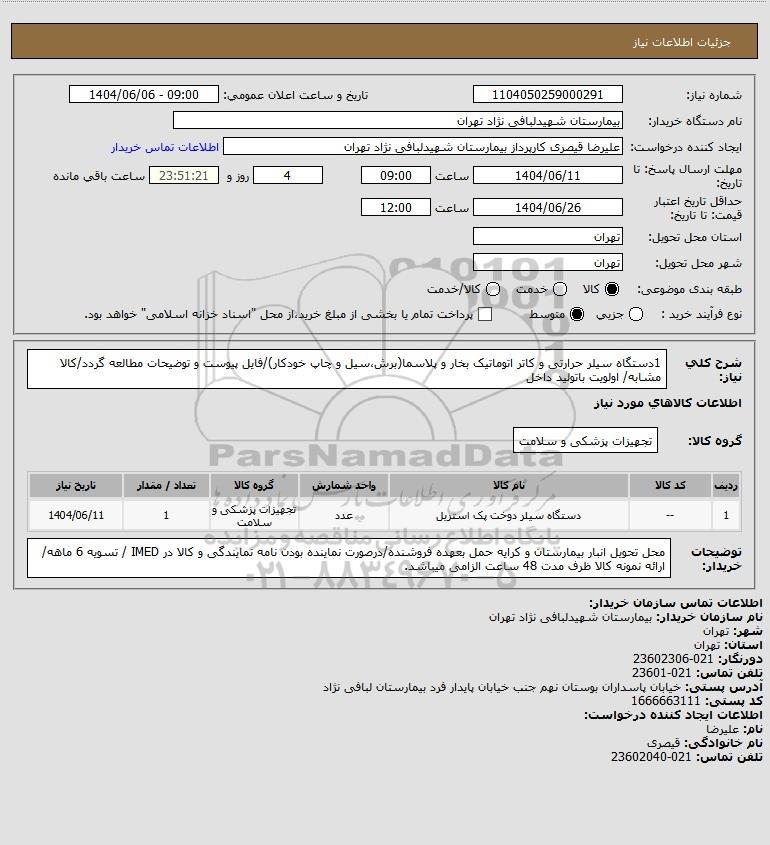 1 -- دستگاه سیلر دوخت پک استریل عدد تجهیزات پزشکی و سلامت 1 1404/06/11