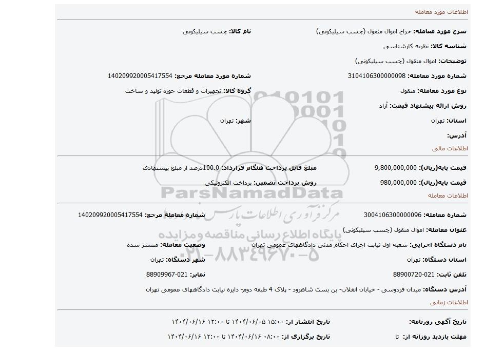 عنوان معامله: اموال منقول (چسب سیلیکونی) | ||
