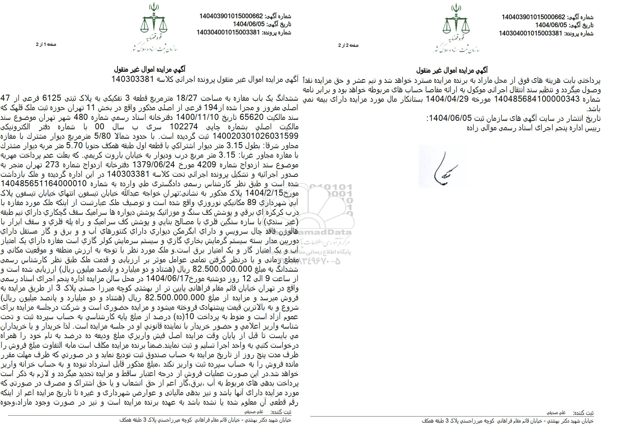 شماره آگهی 140403901015000662