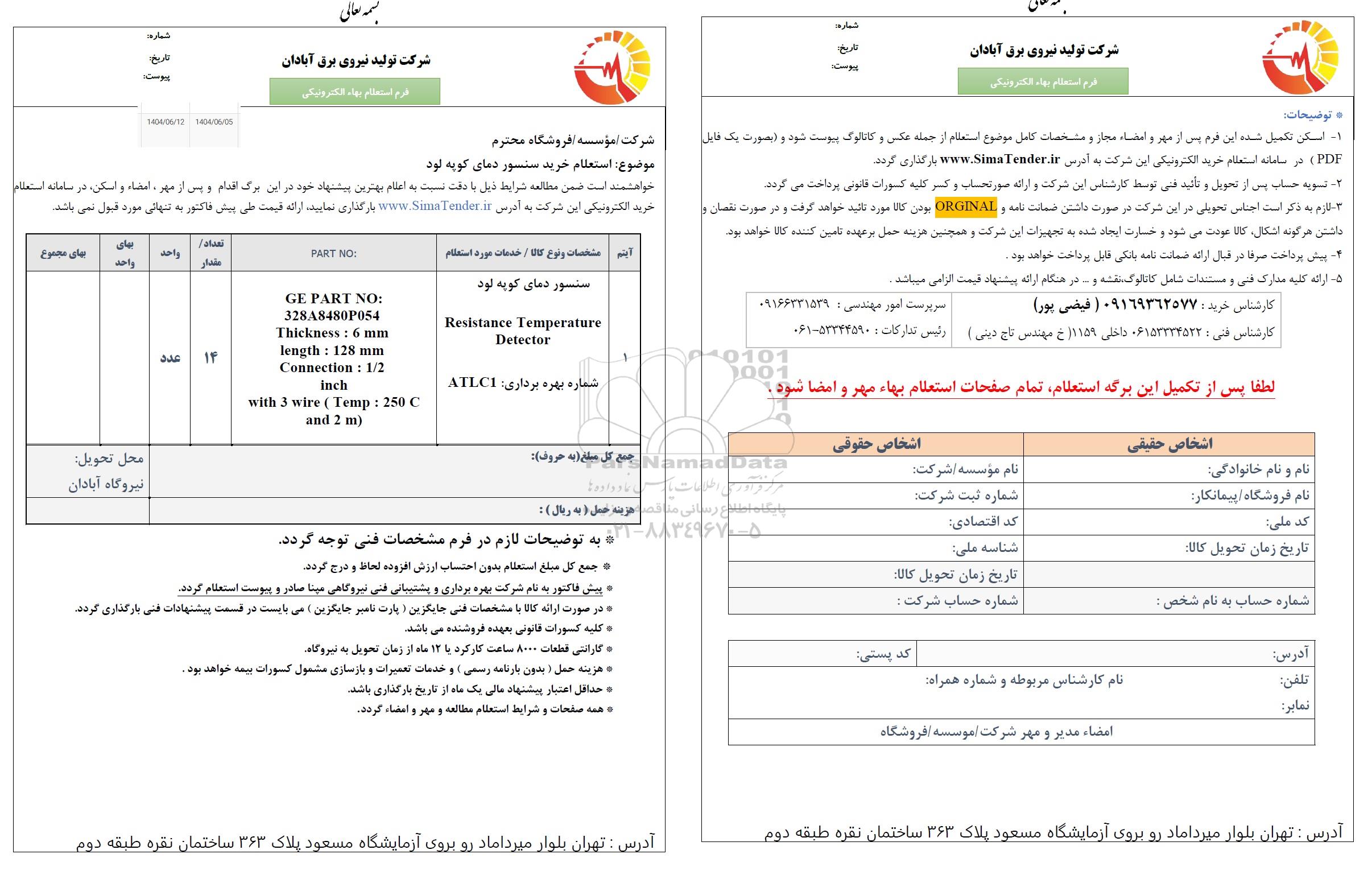 (PDF) در سامانه استعلام خرید الکترونیکی این شرکت به آدرس www.SimaTender.ir بارگذاری گردد.