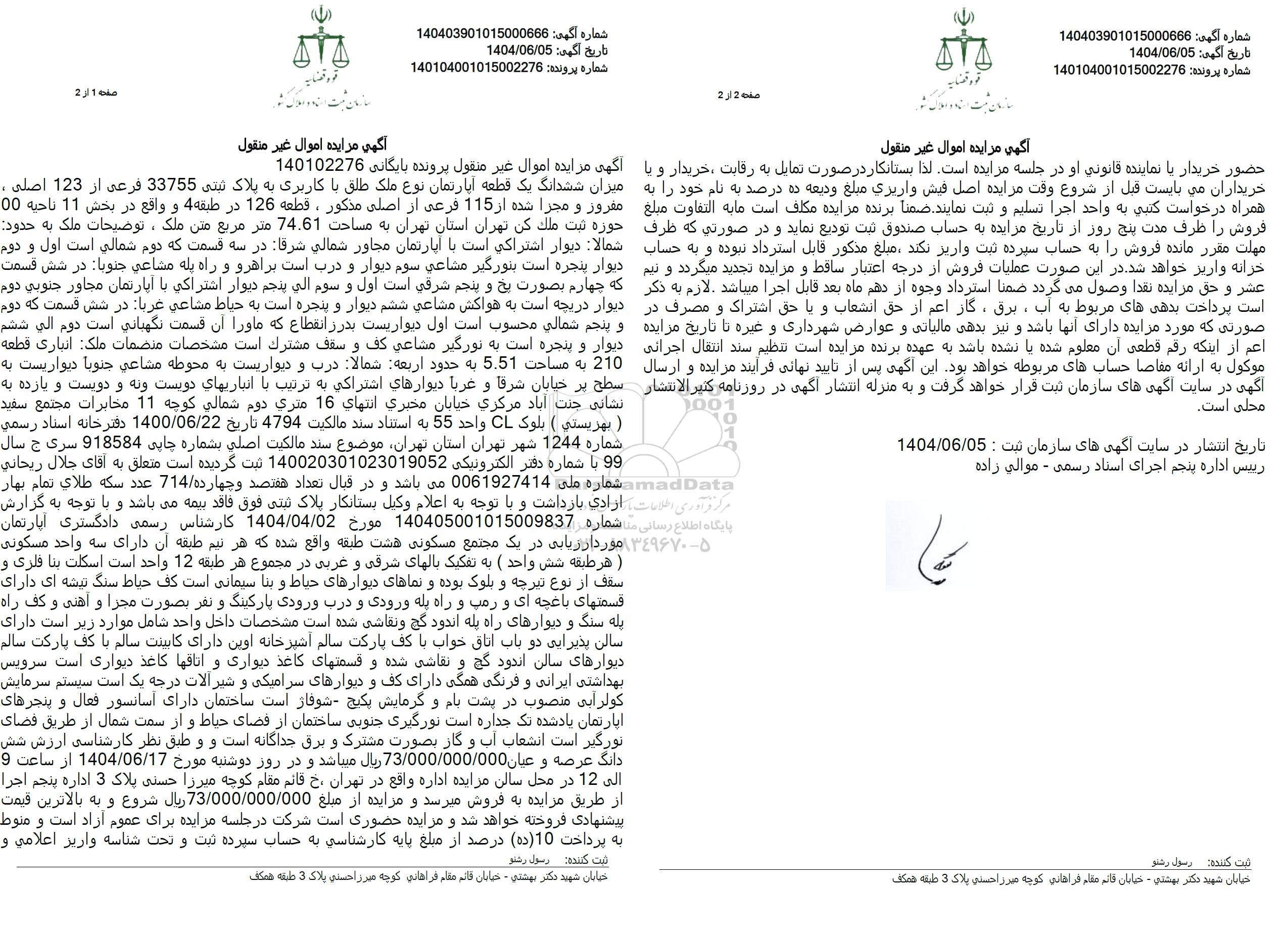 ارزش مورد مزایده 73.000.000.000 ریال
