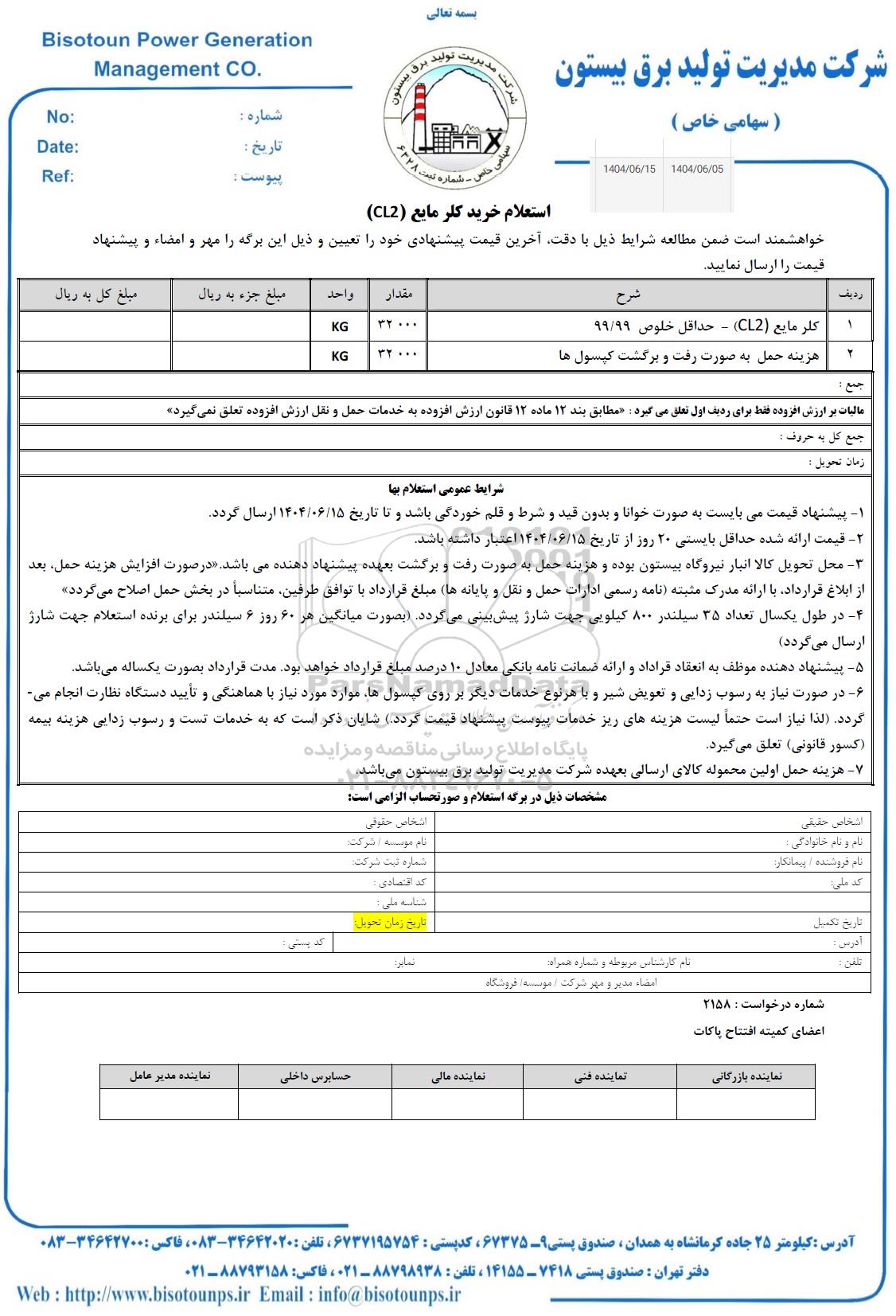 استعلام خرید کلر مایع (cl2), استعلام خرید کلر مایع (cl2)