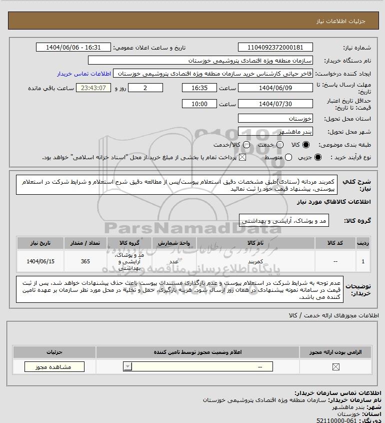 نام سازمان خریدار: سازمان منطقه ویژه اقتصادی پتروشیمی خوزستان