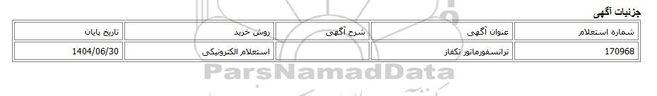 170968ترانسفورماتور تکفازاستعلام الکترونیکی1404/06/30