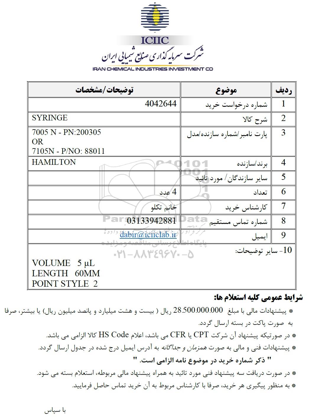 | 9 | ایمیل | dabir@iciiclab.ir |