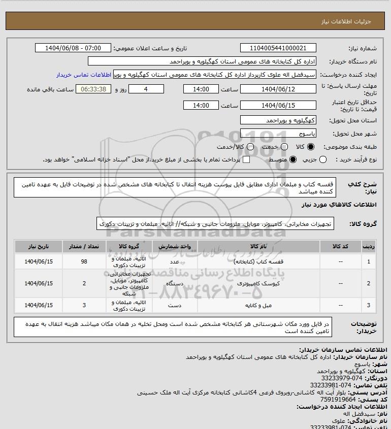نام دستگاه خریدار:اداره کل کتابخانه های عمومی استان کهگیلویه و بویراحمد