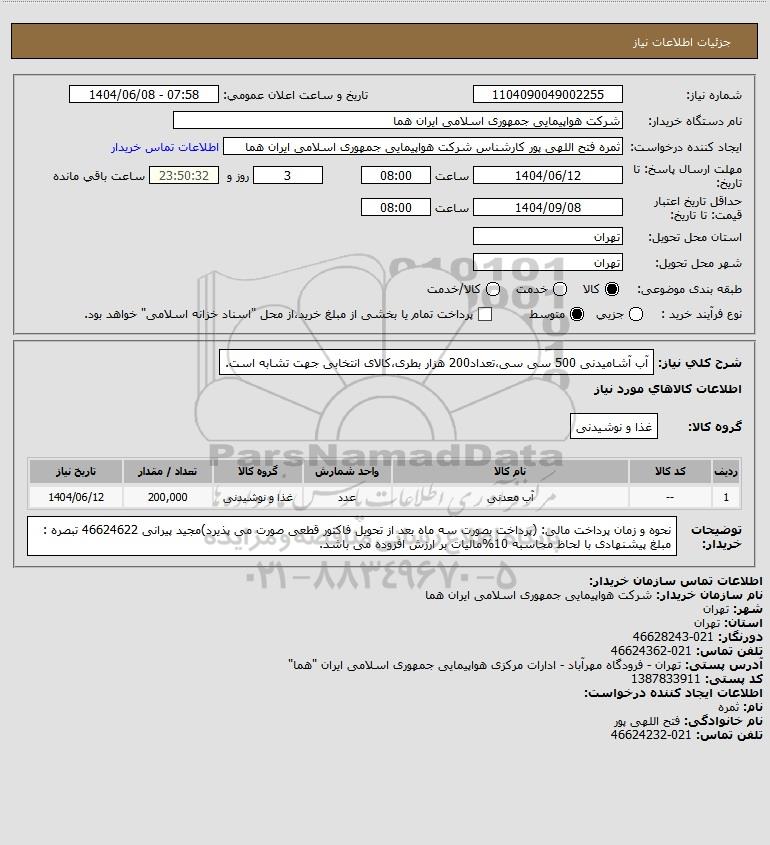نام دستگاه خریدار:شرکت هواپیمایی جمهوری اسلامی ایران هما
