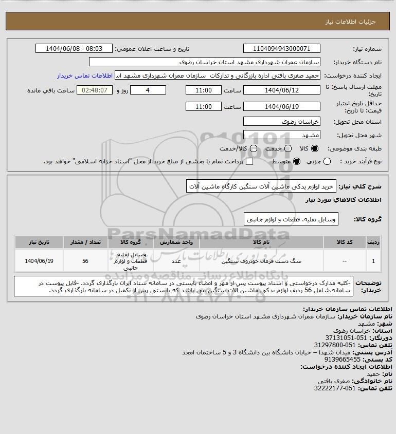 نام دستگاه خریدار:سازمان عمران شهرداری مشهد استان خراسان رضوی