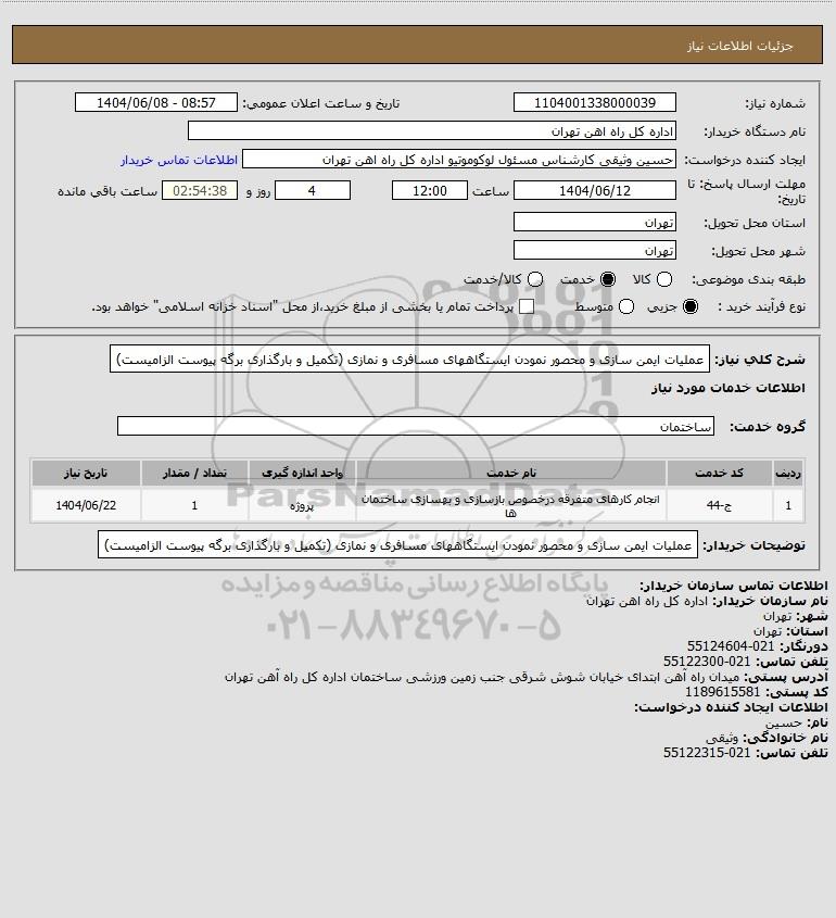 شرح کلی نیاز: عملیات ایمن سازی و محصور نمودن ایستگاههای مسافری و نمازی (تکمیل و بارگذاری برگه پیوست الزامیست)