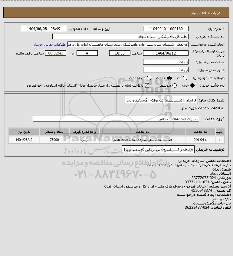 نام دستگاه خریدار:اداره کل دامپزشکی استان زنجان