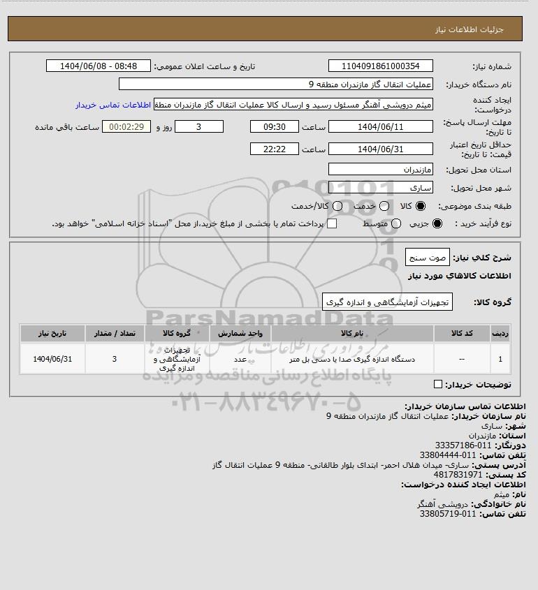 1 -- دستگاه اندازه گیری صدا یا دسی بل متر عدد تجهیزات آزمایشگاهی و اندازه گیری 3 1404/06/31