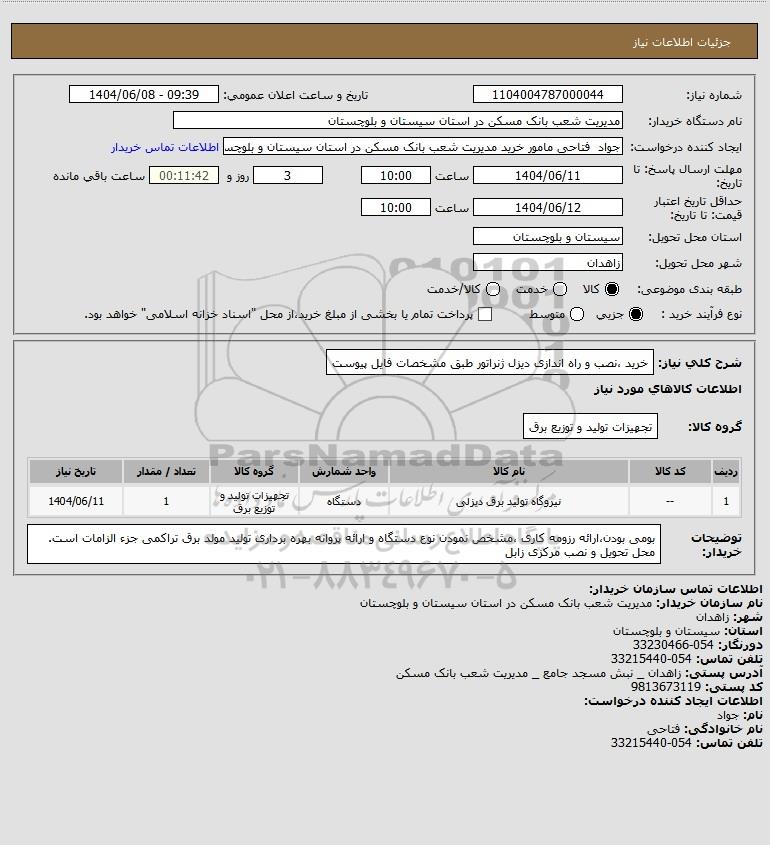 شرح کلی نیاز: خرید ،نصب و راه اندازی دیزل ژنراتور طبق مشخصات فایل پیوست