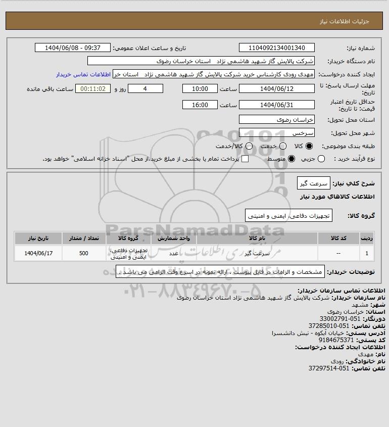 نام دستگاه خریدار:شرکت پالایش گاز شهید هاشمی نژاد استان خراسان رضوی