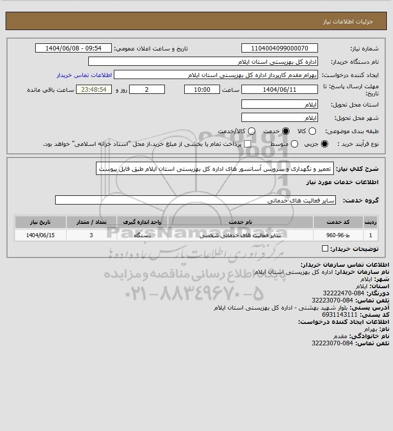 استعلام تعمیر و نگهداری و سرویس آسانسور های اداره کل بهزیستی استان ایلام طبق فایل پیوست, استعلام تعمیر و نگهداری و سرویس آسانسور های اداره کل بهزیستی استان ایلام طبق فایل پیوست