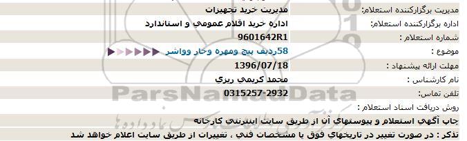 اداره برگزارکننده استعلام: اداره خرید اقلام عمومی و استاندارد