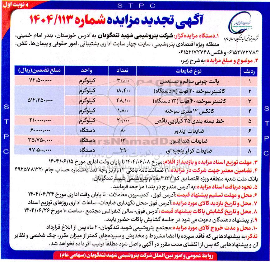 آگهی تجدید مزایده شماره 1404/113 نوبت اول؟