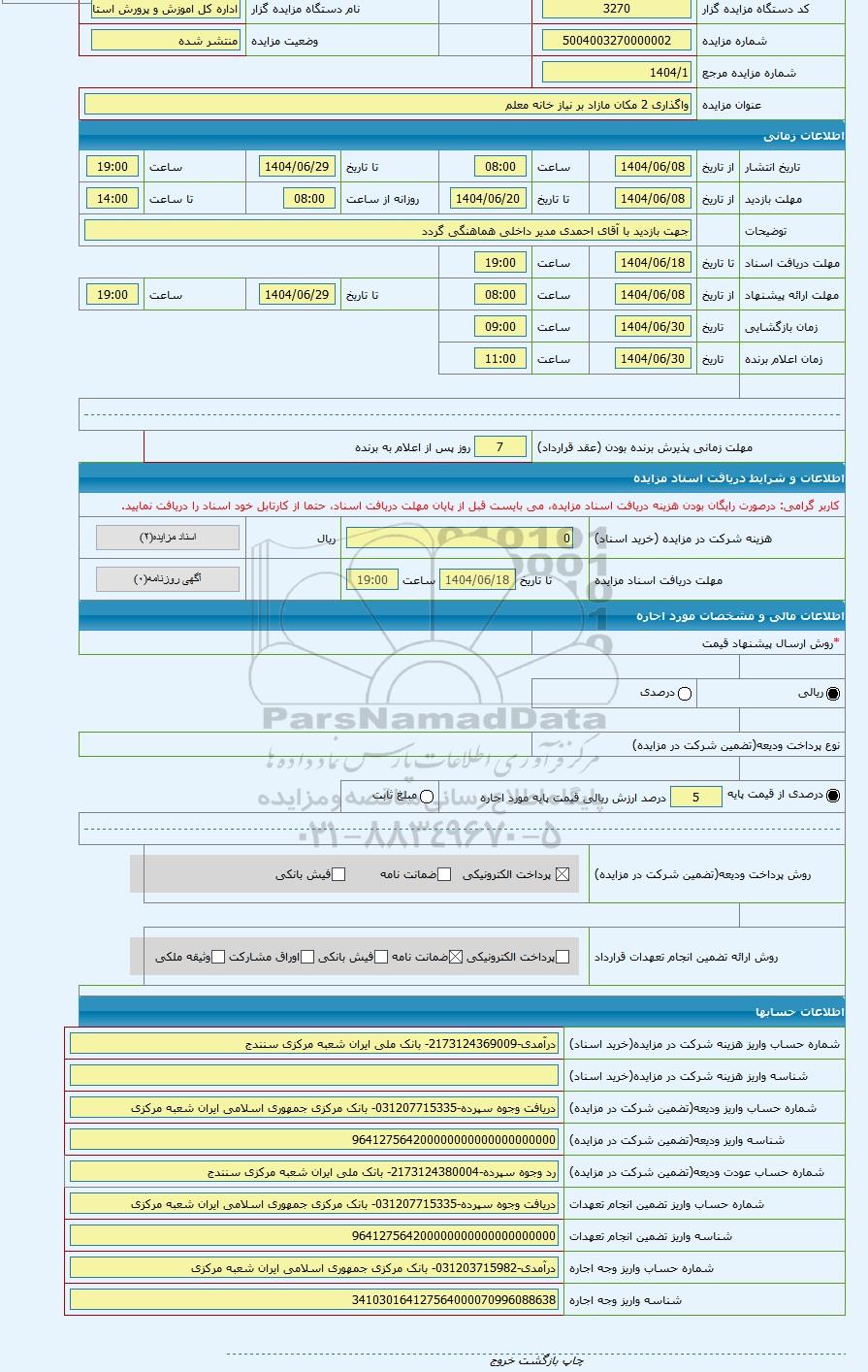 شماره مزایده5004003270000002