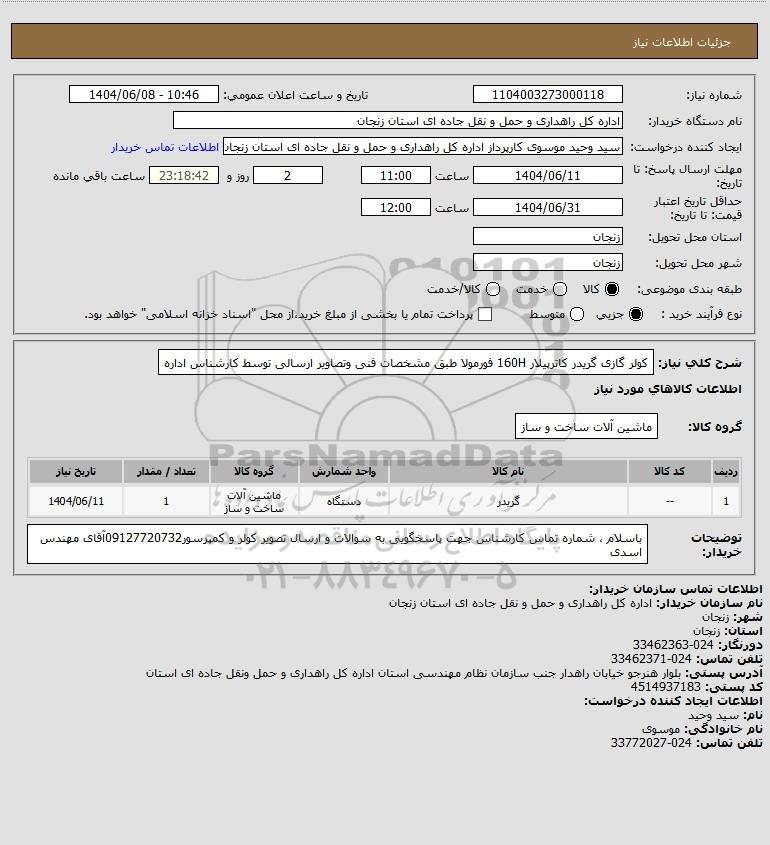 شرح کلی نیاز: کولر گازی گریدر کاترپیلار 160H فورمولا طبق مشخصات فنی وتصاویر ارسالی توسط کارشناس اداره