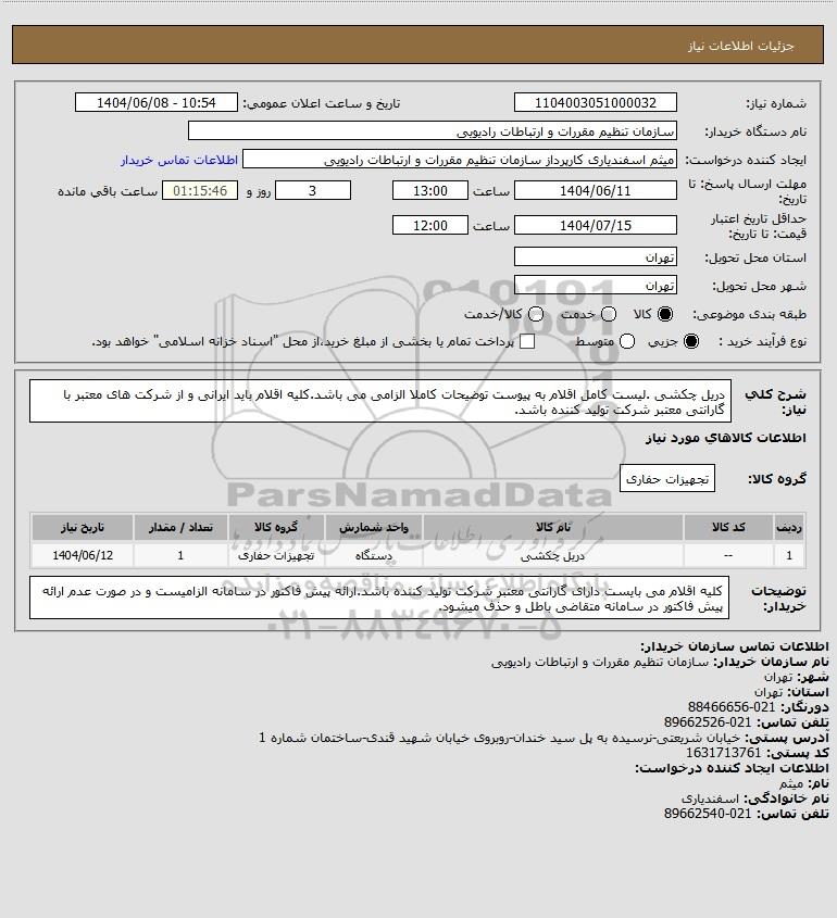 نام دستگاه خریدار:سازمان تنظیم مقررات و ارتباطات رادیویی