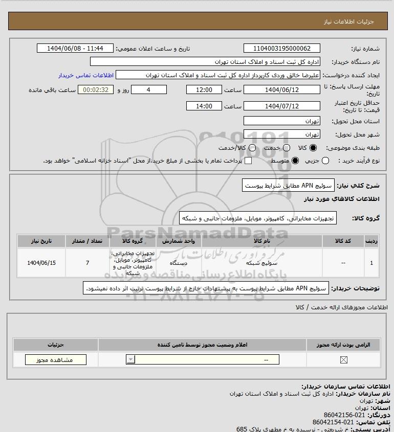 نام دستگاه خریدار:اداره کل ثبت اسناد و املاک استان تهران