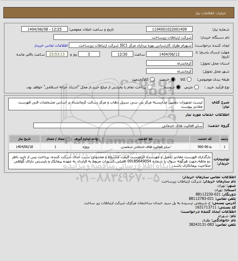 نام سازمان خریدار: شرکت ارتباطات زیرساخت