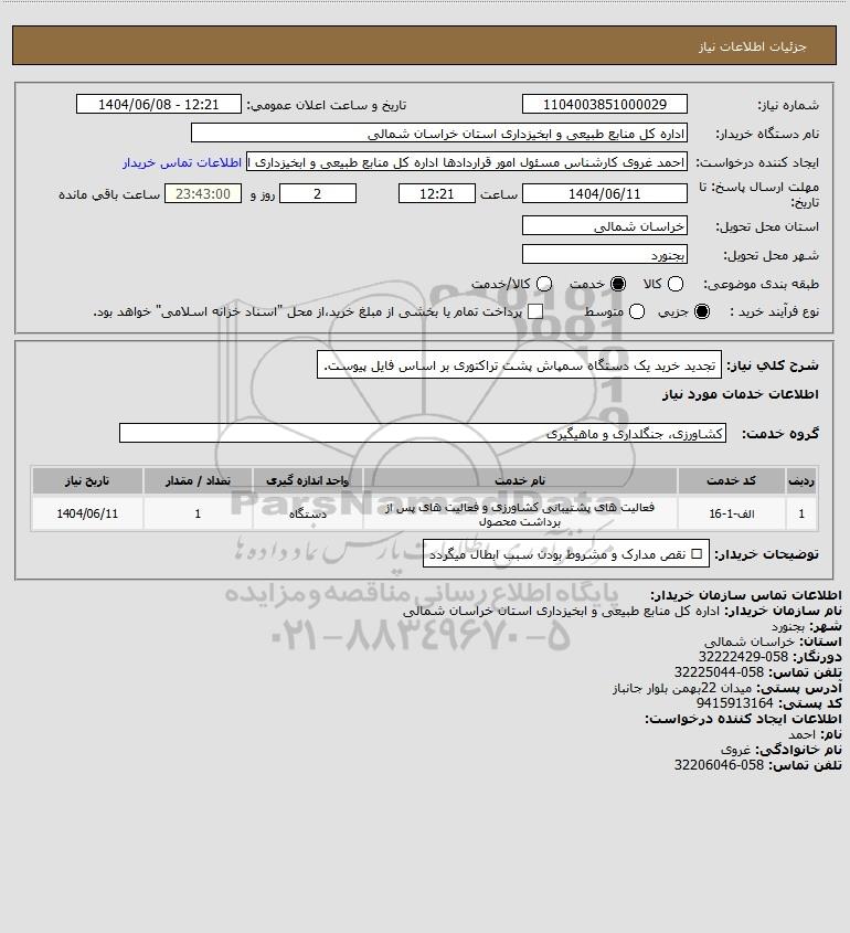 نام دستگاه خریدار:اداره کل منابع طبیعی و ابخیزداری استان خراسان شمالی