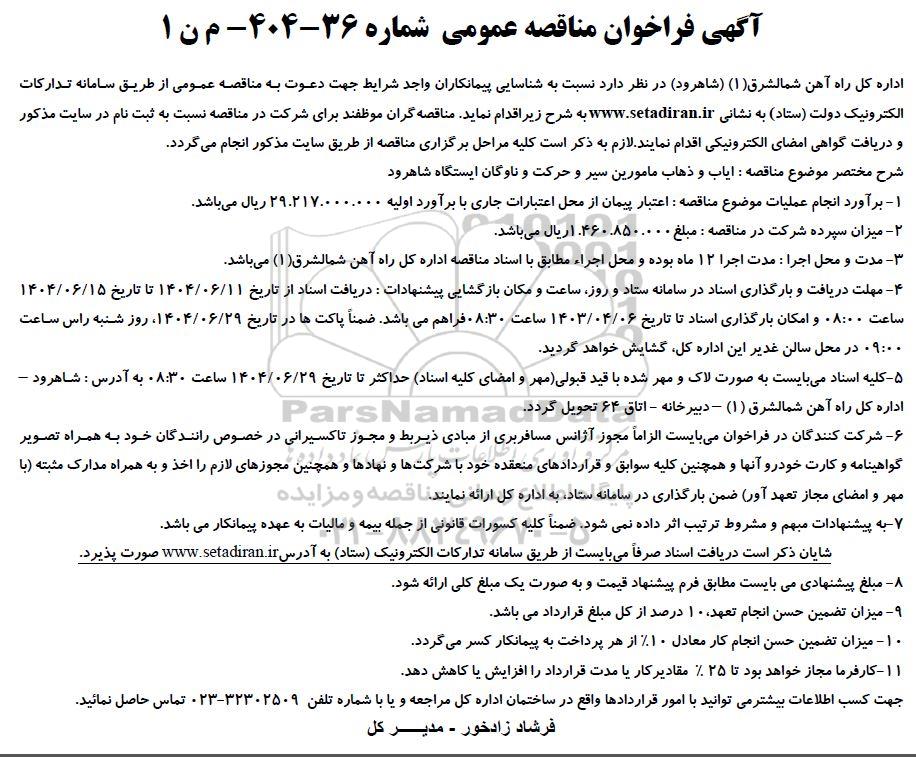 آگهی فراخوان مناقصه عمومی شماره 36-404- م ن 1