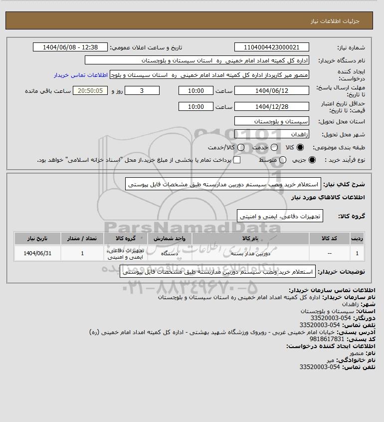 نام دستگاه خریدار:اداره کل کمیته امداد امام خمینی ره استان سیستان و بلوچستان